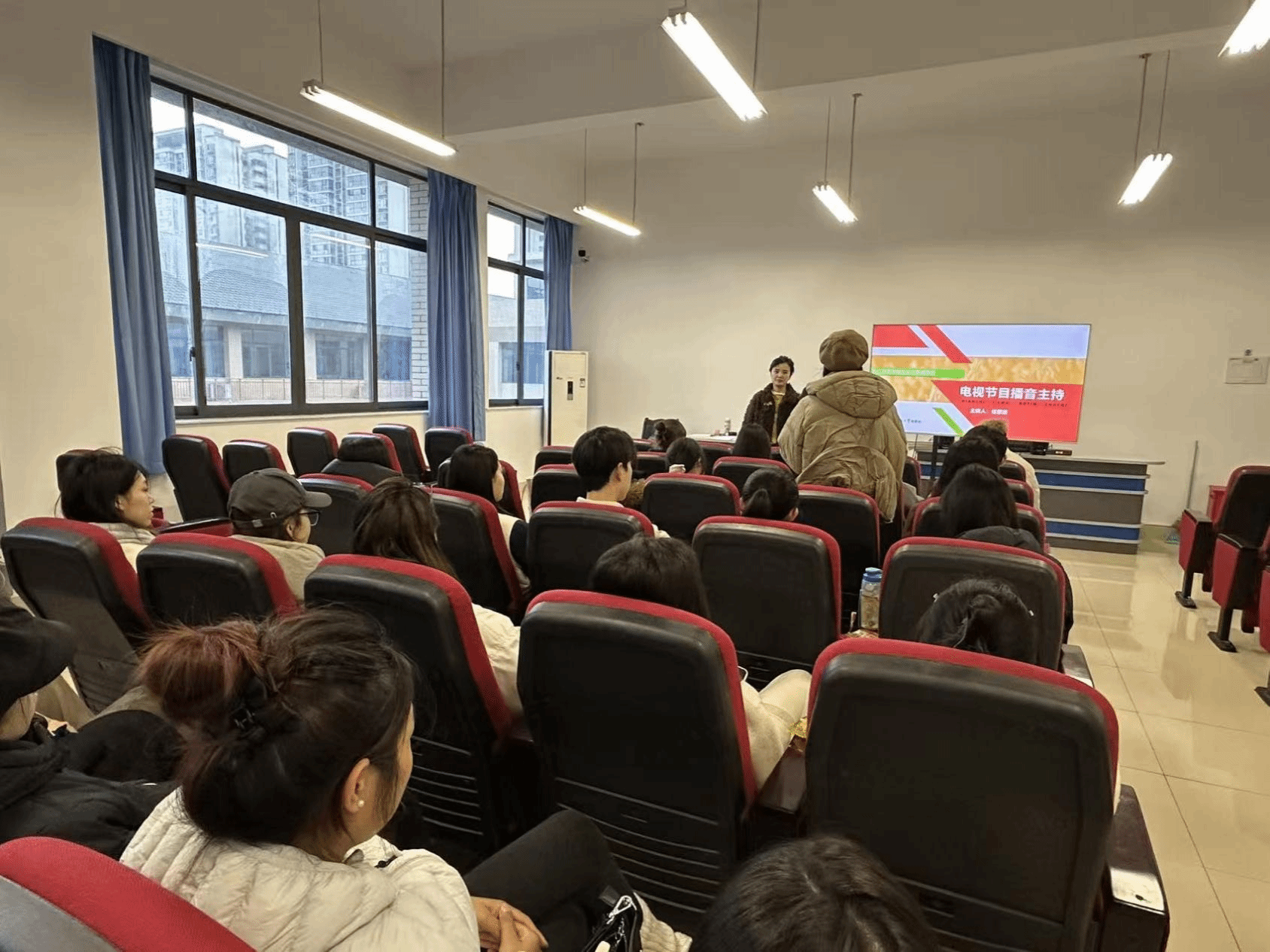 检查组一行先后走进电视节目播音主持、网络新闻学、主持人语言艺术、互联网+创新创业工作坊等课堂,重点检查教师到岗、学生出勤、课堂纪律等情况,同时关注多媒体设备运行、课程内容设计及师生互动效果,深入了解授课教师的教学准备、教案落实情况,细致观察学生的听课状态和课堂参与度。