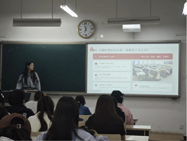 本次班会活动结合应急管理部、四川应急、内江应急等官方权威信息及学校学生工作部温馨提示,从三方面开展宣教。一是科学避险,系统讲解地震预警“伏地、遮挡、手抓牢”核心原则,拆解室内外避险、震后撤离要点,提醒开启手机地震预警、熟记校园疏散路线;二是消防安全,严令禁用大功率电器、规范充电操作,强调保持通道畅通,熟练掌握灭火器使用方法与火灾应急处置流程。三是清朗网络,明确要求学生面对灾害信息做到不恐慌、不造谣、不传谣、不信谣,以官方发布为准。