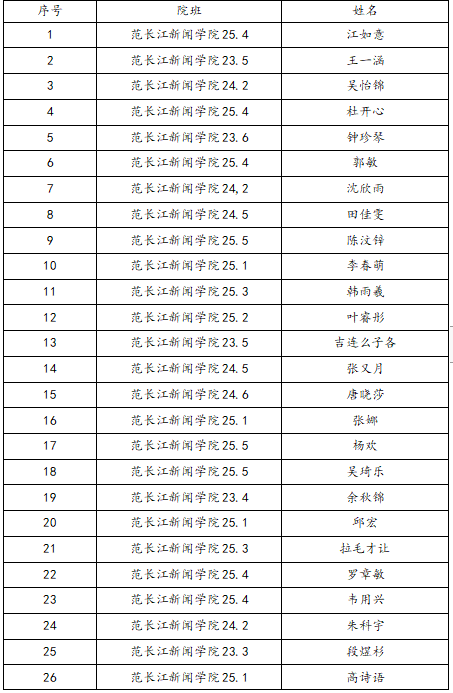 为进一步巩固寒假社会实践活动效果,扩大活动影响,根据《共青团内江师范学院委员会关于开展“青雁归巢·智惠家乡”2026年寒假社会实践活动先进个人评选的通知》,经学生个人申报、团支部推荐、团委评定,现将我院2026年寒假社会实践活动先进个人推荐名单进行公示。