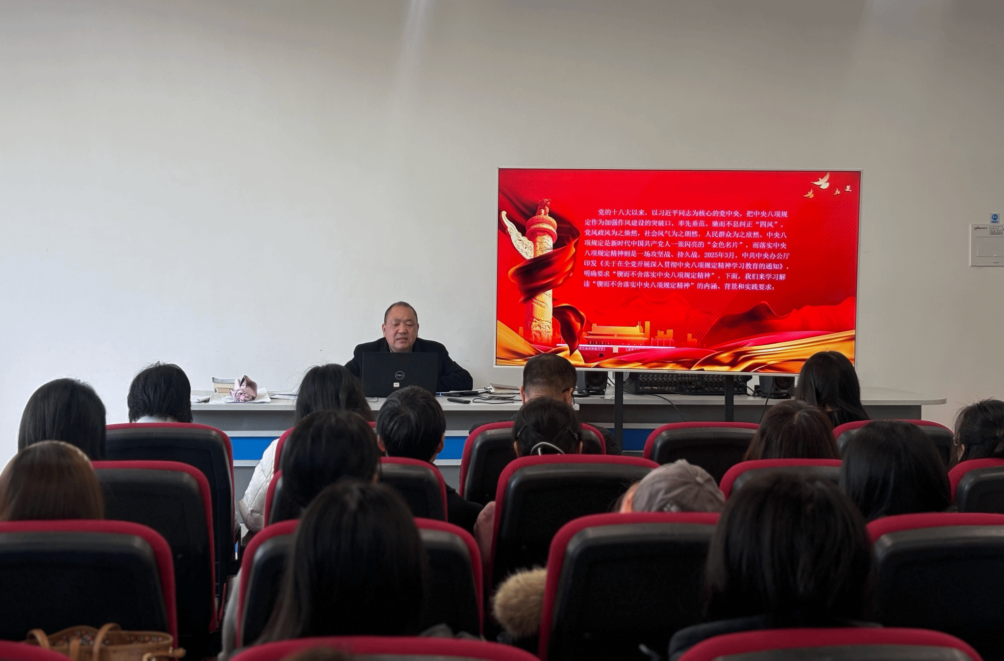 为持续深化学院作风建设,2025年12月1日,学院党委书记徐大军以《锲而不舍落实中央八项规定精神》为主题,为师生党员讲授专题党课。学院党委委员、师生党支部书记、师生党员参加了此次党课。
