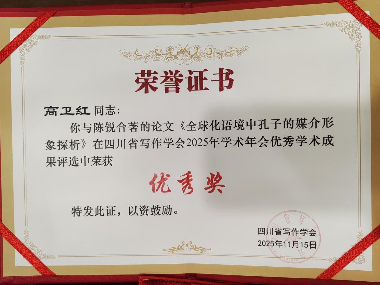 高卫红教授与陈锐博士合作的《全球化语境中孔子的媒介形象探析》,深度剖析时代变迁中传统文化符号的多模态表达内涵;毛敬莲老师、陈锐博士与罗丹副教授联合撰写的《范长江新闻教育思想及当代价值》,立足本土新闻先贤范长江精神遗产,呼应了新时代“传承优秀新闻传统、回归新闻本真”的行业诉求。两篇论文均以鲜明的问题意识、严谨的论证逻辑,通过“选题科学、立意深刻、理论联系实际”的评选标准,获评审专家一致认可。