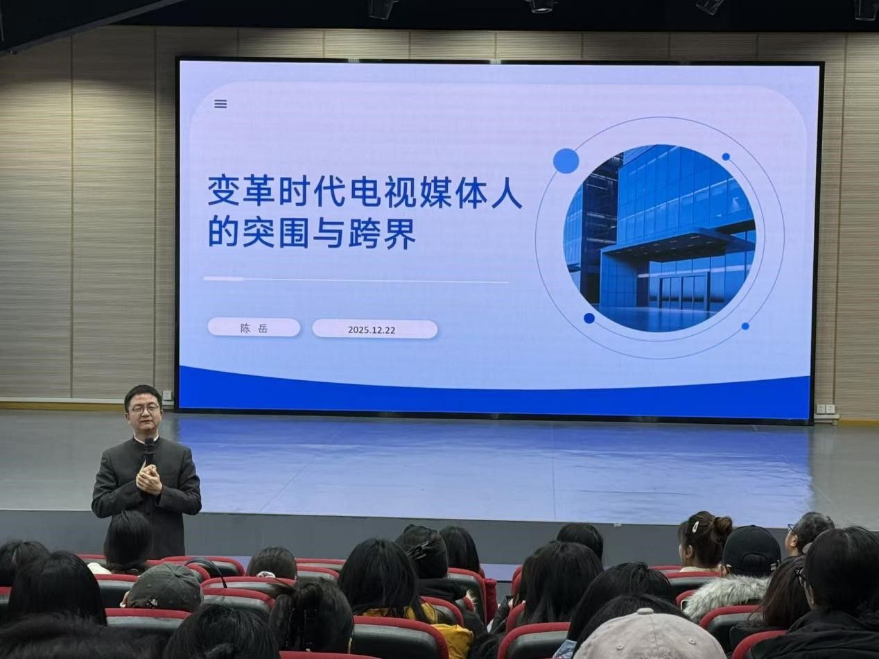 12月22日,我院在弘文楼539教室举办“变革时代电视媒体人的突围与跨界”主题讲座。本次讲座邀请“金话筒奖”获得者陈岳担任主讲嘉宾。他以三位优秀媒体人的实践案例为切入点,深入解析新媒体时代电视媒体人打造优质作品、实现跨界突围的路径,为同学带来了一场兼具专业性与指导性的分享。
