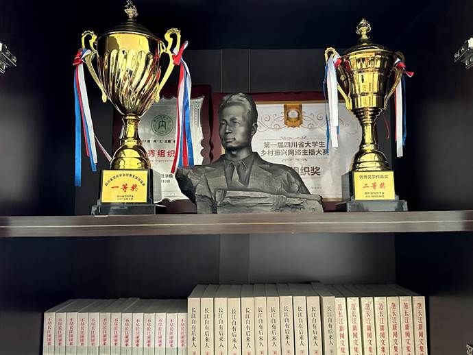 据介绍,2019年,为纪念范长江先生诞辰110周年,来自全国新闻媒体的38位范长江新闻奖获得者共同捐款,将具有纪念意义的“青年范长江铜像”捐赠给范长江家乡的内江师范学院范长江新闻学院。这个铜像由青年雕塑艺术家郎钺创作,精彩传神,栩栩如生,英气飞扬,表现了青年范长江新闻报国的生动形象,被公认为是表现长江精神的艺术佳作。“青年范长江”铜像当年举行了落成和捐赠仪式,铜像伫立在内江师范学院范长江新闻学院门前,激励一代代青年学子继承长江精神,也成为中国新闻工作者情系范长江家乡,继承范长江新闻精神和光荣传统的美好象征。