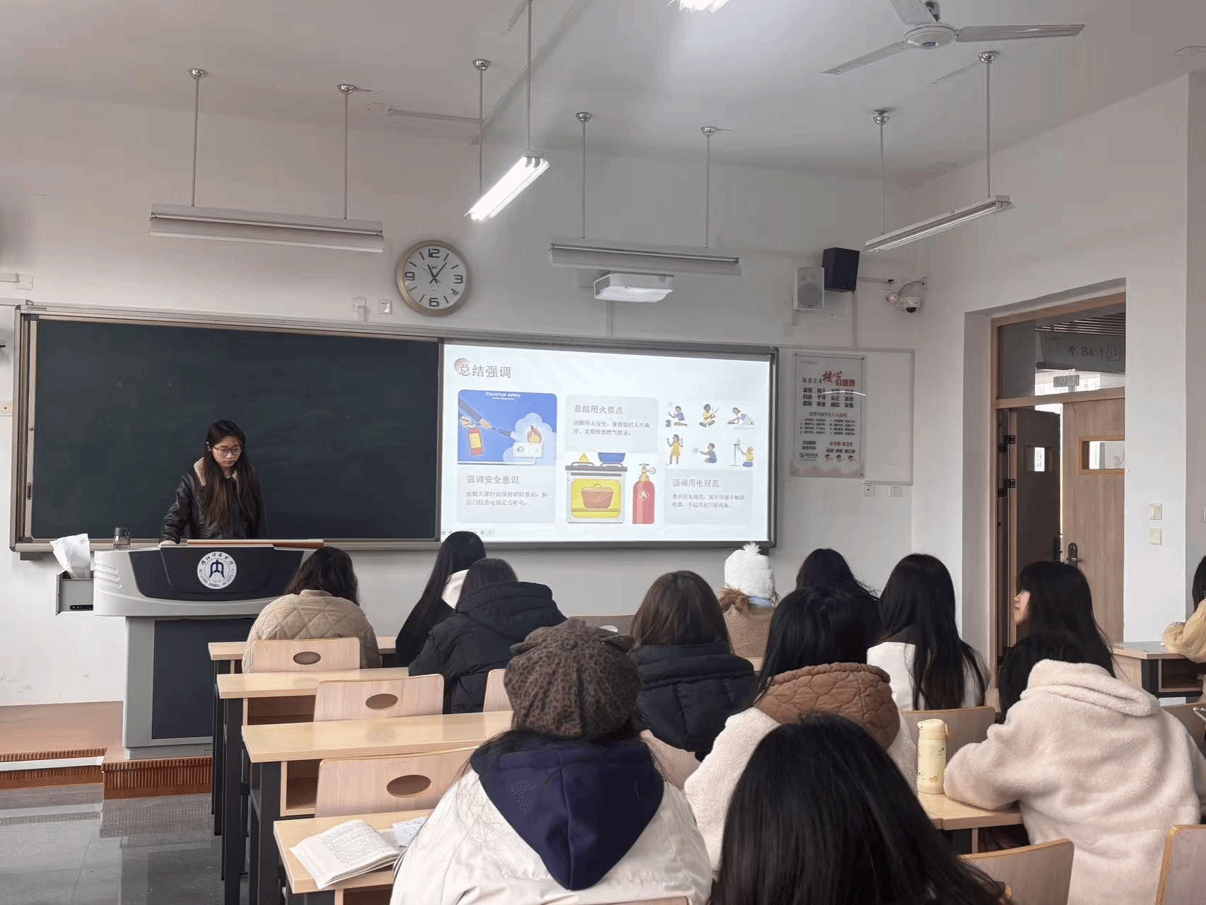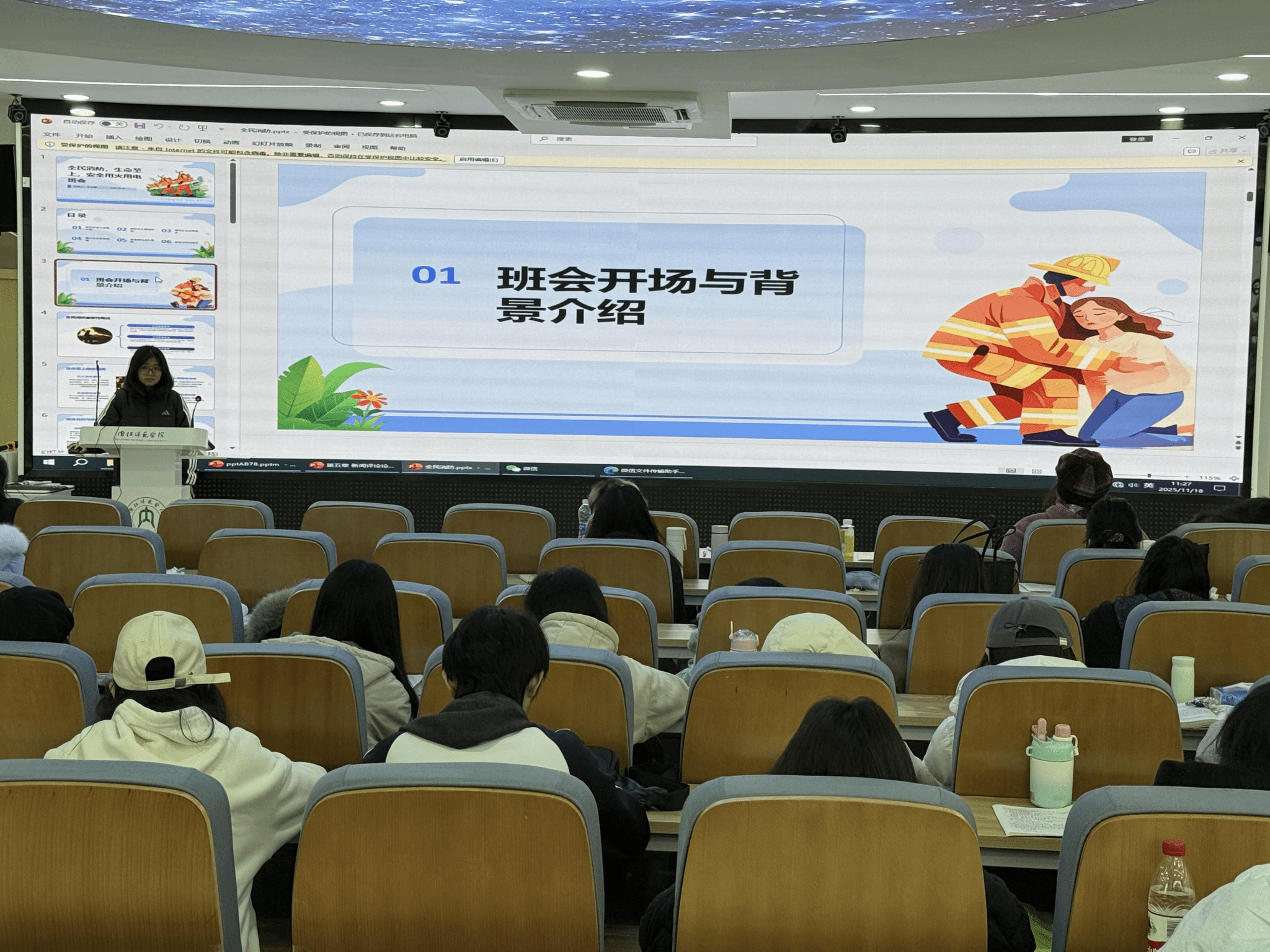 2025级1班赵民浩同学在会后分享时说道:“以前总觉得火灾离自己很远,这次班会让我意识到,宿舍里私拉电线、插排超负荷使用等小细节,都可能引发大危险。”