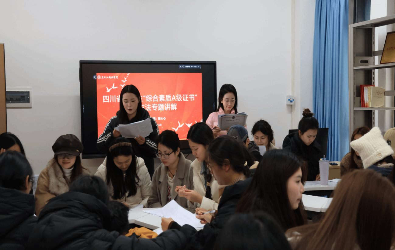 为扎实推进“四川省大学生综合素质A级证书”认证工作,3月16日下午,我院在党团活动室召开专题宣讲会。团委书记、学工办主任陈心心主讲,各年级学生代表参会。